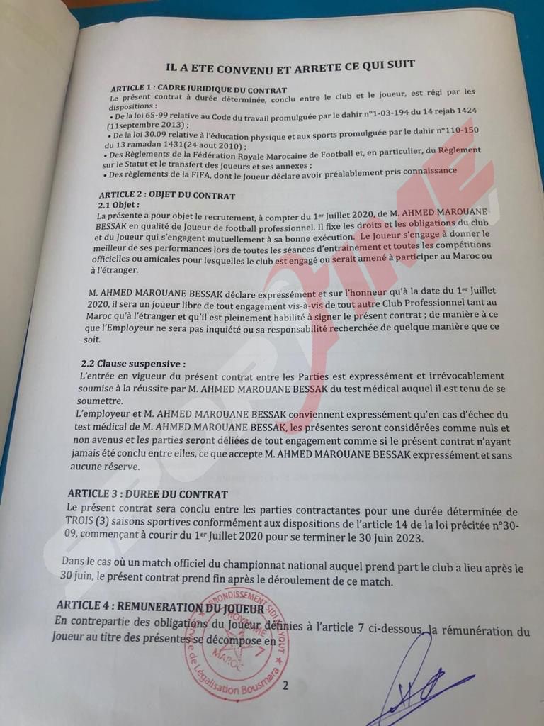 وثائق حصرية.. الرجاء يلجأ للجنة النزاعات ضد بيساك