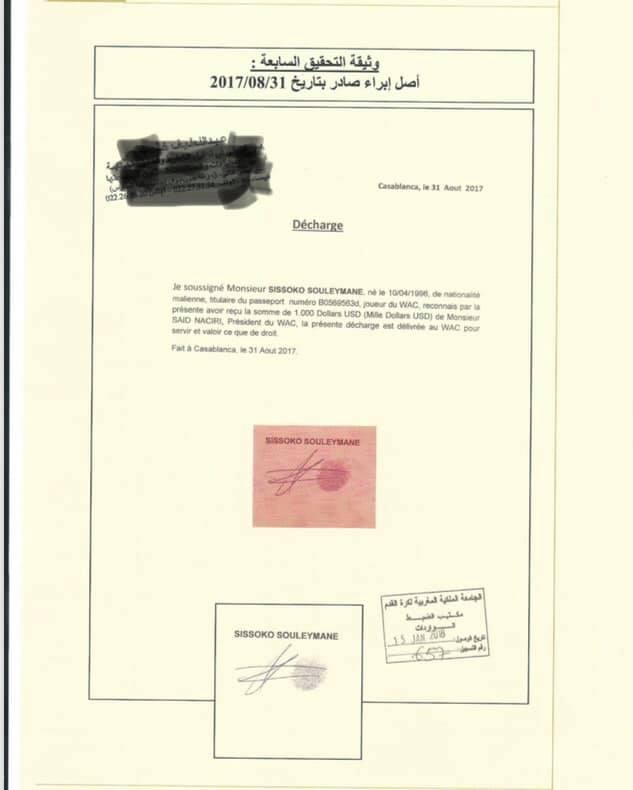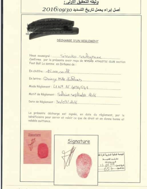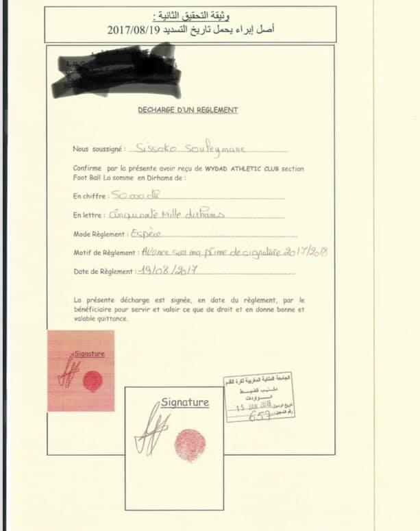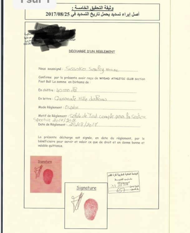 وثائق.. كشف تزوير بصمة سيسوكو يكلف الوداد 20 مليون سنتيم وهذه التفاصيل